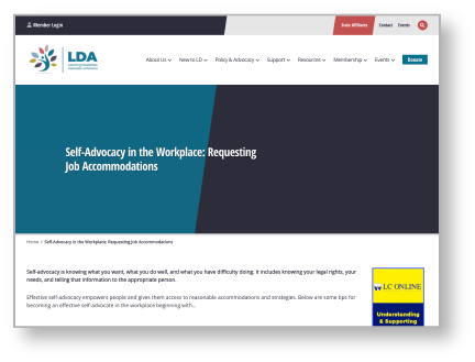 From the Learning Disabilities Association of America, this Self-Advocacy in the Workplace resource walks through steps for advocating on the job.