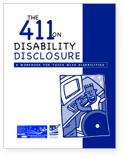 The 411 on Disability Disclosure: A workbook for youth with disabilities (PDF) is designed to help youth make informed decisions about whether or not to disclose their disability — including how the decision could impact their education, employment and social lives.