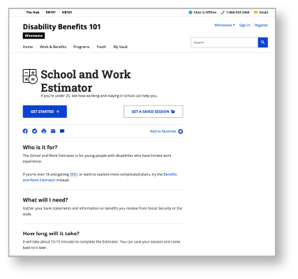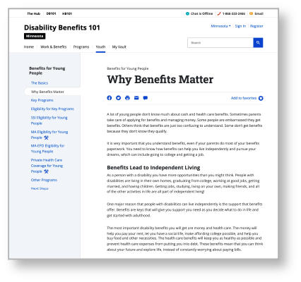 <li>Save favorite pages and tools on the Disability Hub MN and Disability Benefits 101 sites</li>