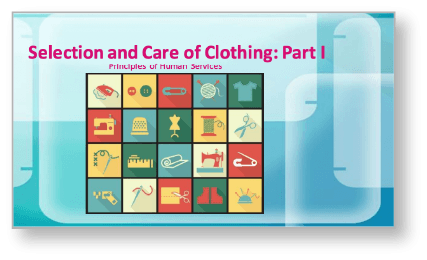 - Awareness: Understand how to select, buy and care for appropriate clothing.
