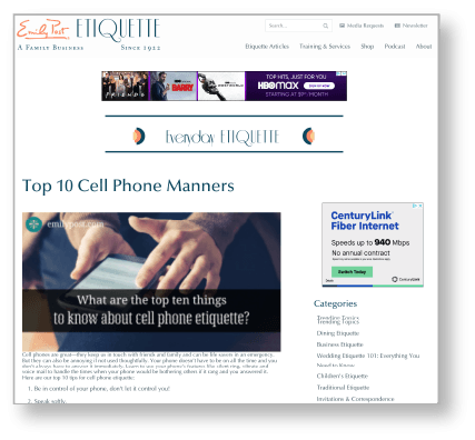 For most people, cell phones are a critical element of daily life. Share Emily Post's top 10 cell phone manners with youth.