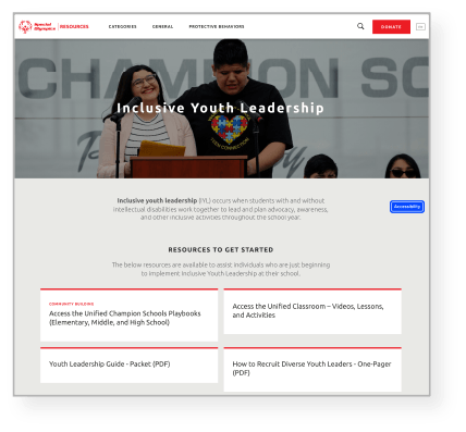 Inclusive youth leadership occurs when students with and without intellectual disabilities work together to lead and plan advocacy, awareness, and other inclusive activities throughout the school year. Special Olympics has gathered resources to assist individuals who are beginning to implement inclusive youth leadership at their school (see the LEARN section above), and resources for more advanced leadership opportunities such as Youth Summits, Youth Leadership Experiences, and Inclusive Youth Leader Training.