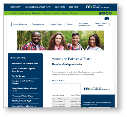 Entrance requirements for a given college or training program apply to all students, including students with disabilities. Depending on the program, admission criteria may include any of the following: