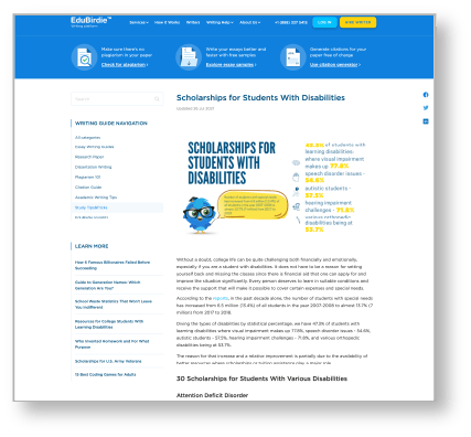 Share this list of scholarships for students with disabilities from EduBirdie. The list is presented by category, including general disabilities.