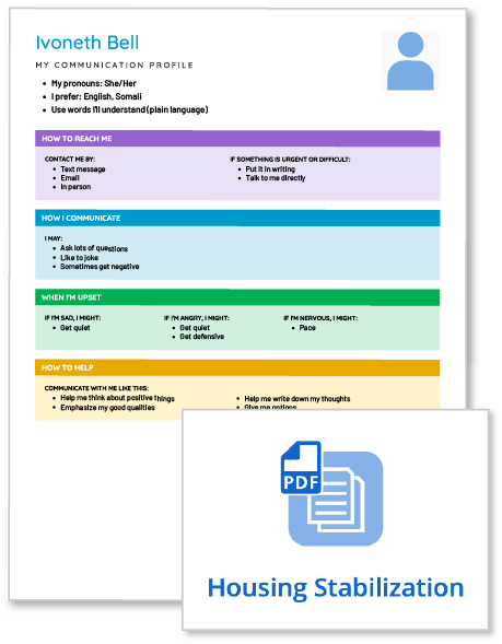 In this activity you can identify the members of your housing support team. The team can include members such as family and friends, case managers, landlords, and transition support. - My Communication Profile